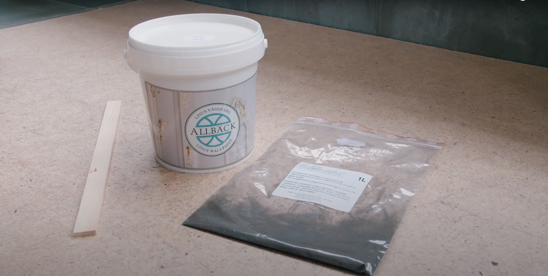 Linus Wall Paint can also be used as a filler by adding Allbäck Pumice Powder. This means the colour of the spackling compound is the same as the paint and can be painted over immediately with Linus Wall Paint. Control the consistency to make your own spackling medium, joint compound, skim coat, or rolled-on wall plaster. Meet your needs for surface repair, smoothing, and painting with the same material.