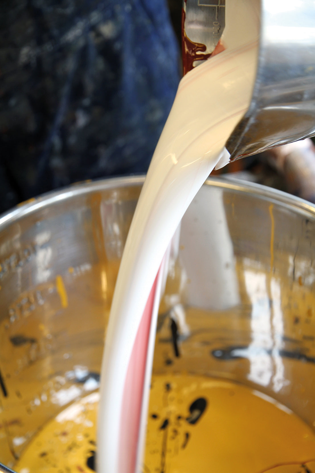 Clean brushes, hands, and other surfaces with linseed soap and water. No solvents are needed with pure linseed oil paint.