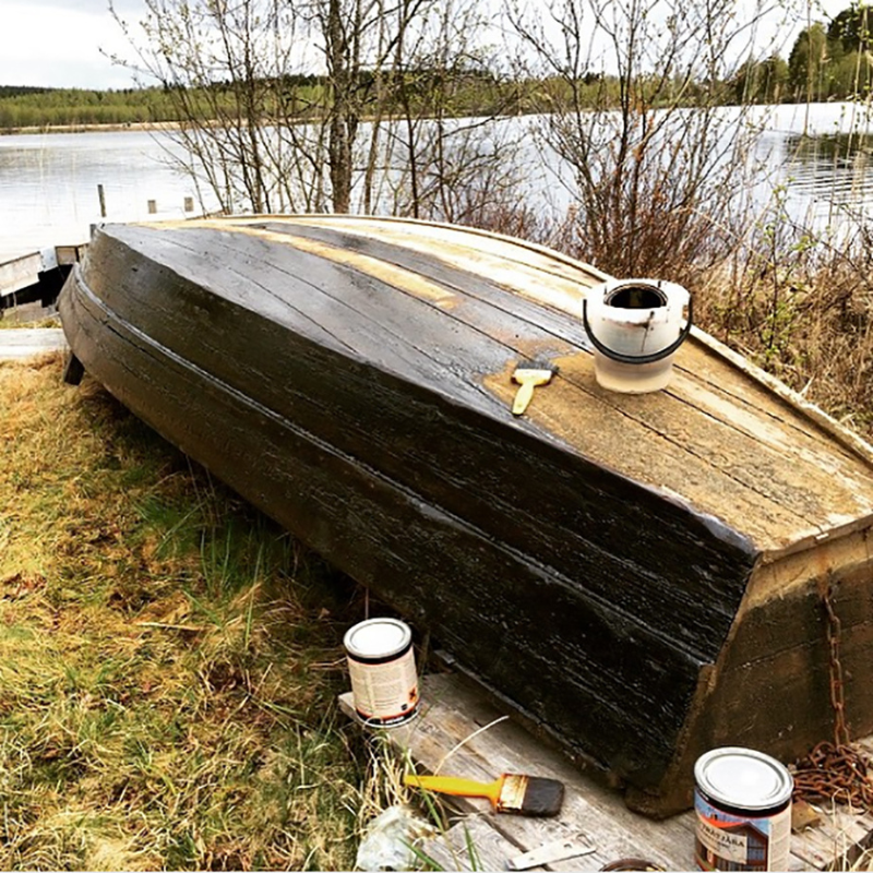 Allbäck's breathable, penetrating paint. Finish the same wood you've just fastened - no plastic film, no barrier coat.