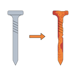LIGNOLOC® nails are made from compressed European beech wood, compressed to 1,300 kg/m³ - nearly as dense as many hardwoods. When shot into timber, friction and compression heat the nail's surface, releasing the wood's natural lignin. That lignin acts as a natural adhesive, fusing the nail to the surrounding wood fibers. The result is an inseparable mechanical and chemical bond - no glue, no formaldehyde, no metal.